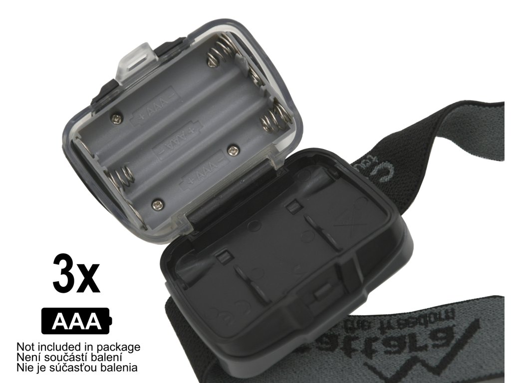 Napájanie je riešené tromi AAA batériami s výdržou 4 hodiny.
