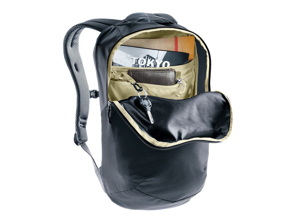 Batoh Yort 15 značky deuter má aerodynamickú ergonómiu zadného polstrovania a nosného systému a tým zaisťuje maximálne pohodlie pri nosení. Vďaka zmenšenej kontaktnej ploche zadného polstrovania so špeciálnymi ventilačnými kanálikmi medzi nimi a priedušnou 3D sieťovinou dochádza k efektívnemu prúdeniu vzduchu. Jeho komponenty boli vyrobené pomocou ekologických a zdrojovo efektívnych výrobných postupov a tkanina tela je z 50% recyklovaná. Do batohu sa pohodlne dostanete vďaka oblúkovitému zapínaniu. Vnútri batohu je organizér a nechýba ani klip na kľúče.