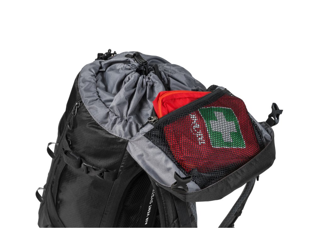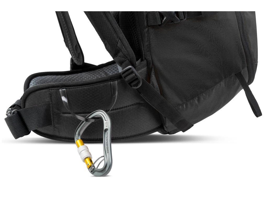 V hornej časti ramien je možné popruhom pritiahnuť alebo povoliť batoh, a tým aj regulovať zaťaženie chrbta podľa potrieb v teréne. Dostatok úchytov pre variabilné uchytenie lezeckej výbavy a materiálu aj trekových palíc. Veko batohu má vnútorné aj vonkajšie vrecko a je možné do neho zbaliť systém na uchytenie prilby. Dve bočné vrecká a predné sieťované vrecko môžu slúžiť na rýchle odloženie častí oblečenia či drobností.