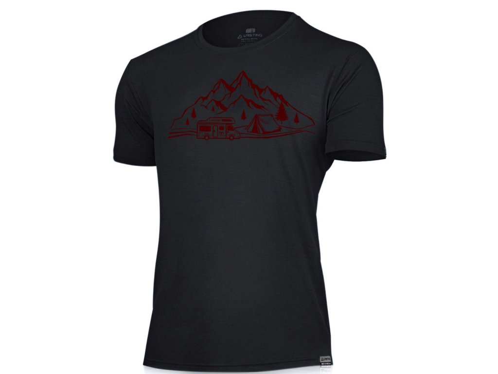 Lasting pánske merino tričko s tlačou ALBI čierne + kód pre dodatočnú 10% zľavu: LAST10