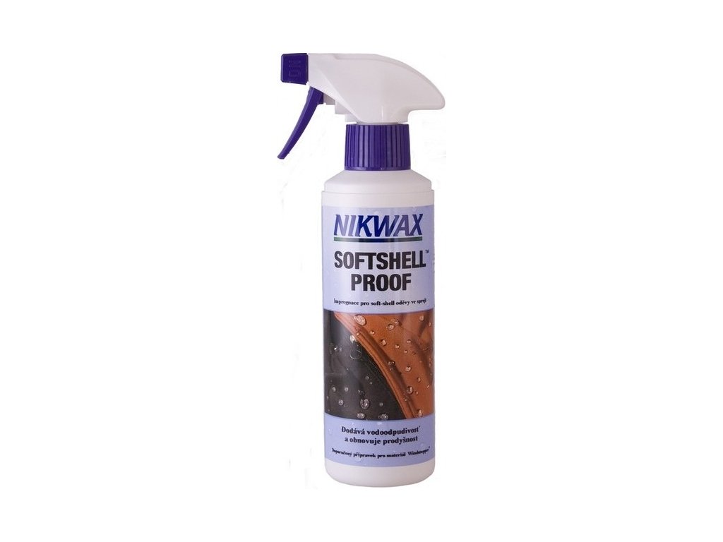 Impregnácia Nikwax Softshell Proof - Spray 300 ml vhodná pre pre všetky softshellové materiály a odevy s chlpatú podšívkou.