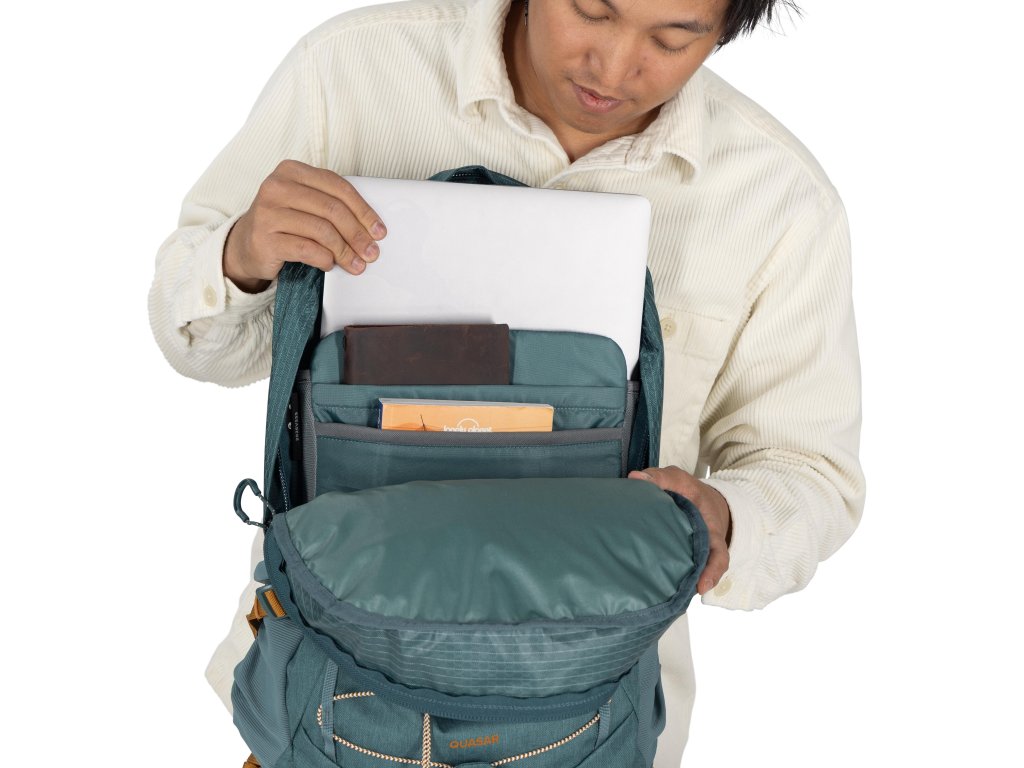 Tento všestranný a odolný plecniak ponúka perfektnú organizáciu vašich vecí a pohodlia pri nosení. Vďaka polstrovanej priehradke na notebook bude vaša elektronika v bezpečí. Má postranné sťahovacie popruhy. Do skrytého priestoru v prednej časti môžete ukryť všetky voľné popruhy a vďaka niekoľkým vreckám, priehradkám a vnútornému organizéru si udržíte vo veciach poriadok. Keď potrebujete nejaký priestor navyše, ale batoh je už plný, určite oceníte sťahovanie pomocou elastických šnúrok v prednej časti, kam môžete narýchlo schovať bundu alebo napríklad cyklistickú helmu.