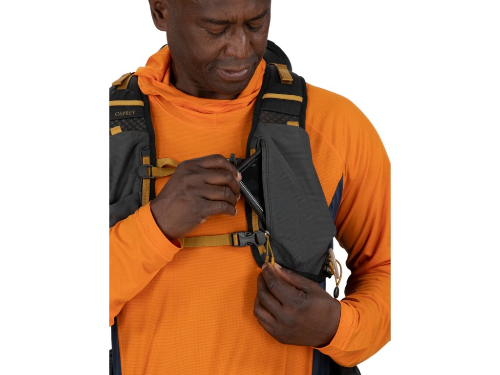 • Stretch-mesh predné vrecko na rýchle uloženie bundy alebo helmy